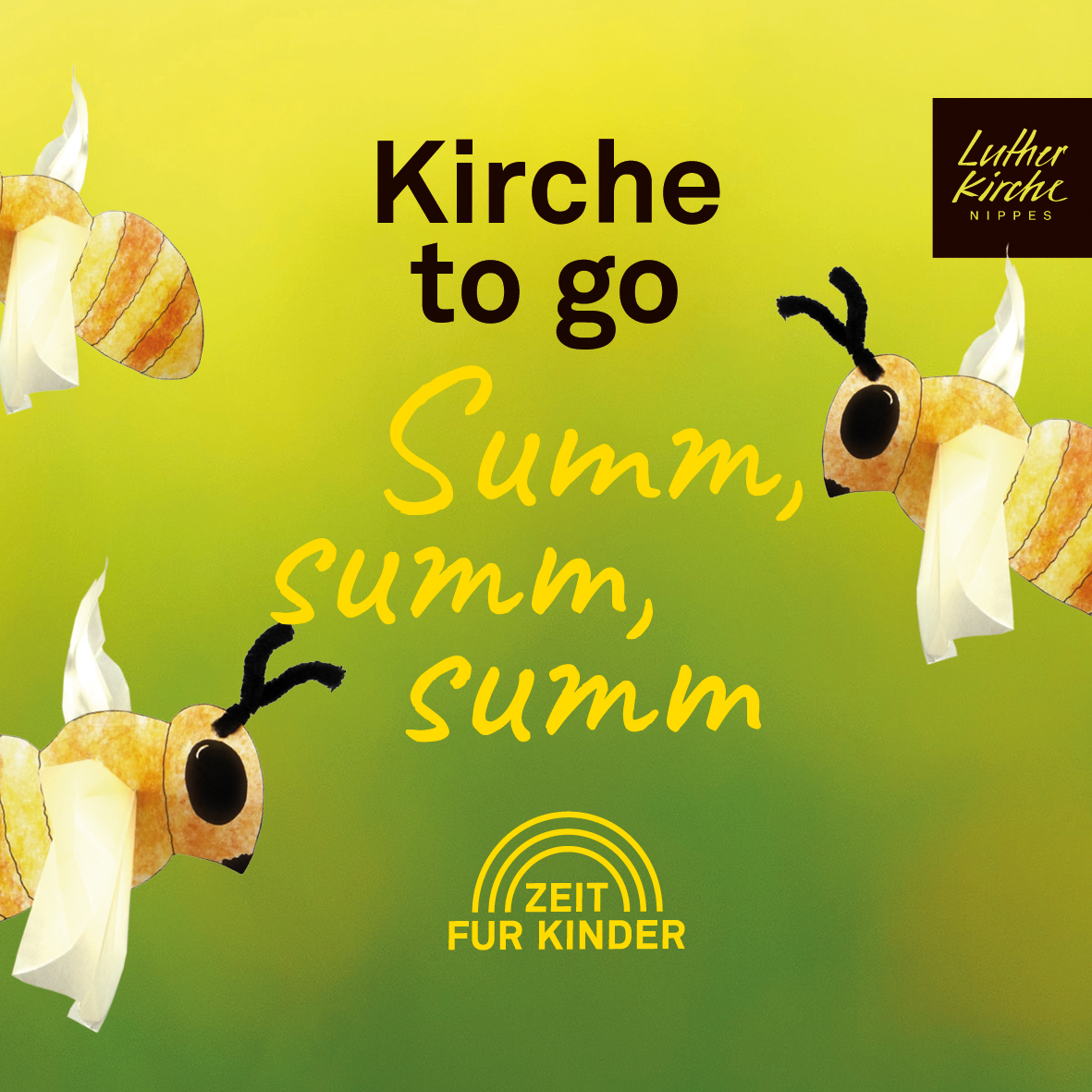 Kirchgarten, Lutherkirche Nippes Siebachstraße, Köln, Deutschland, DeutschlandSumm, summ, summ, Biene summ herum! Unsere Kirche go go zum Thema Bienen. Die Wundertüten zum Basteln gibt es am Sonntag ab 12 Uhr an der Kirche abzuholen.