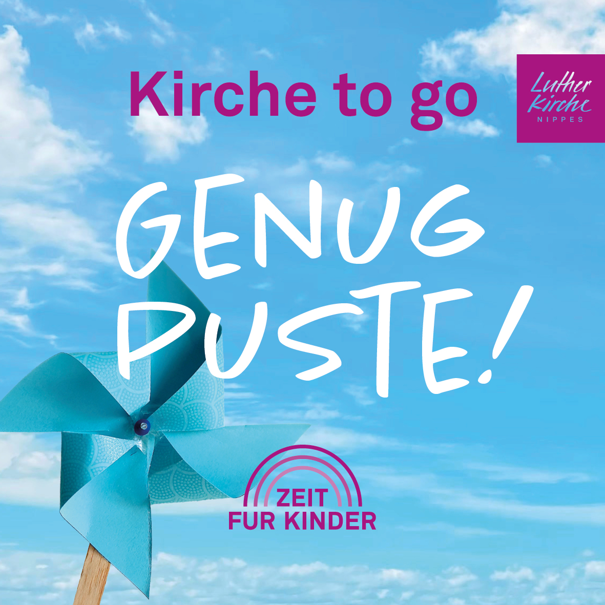 Kirchgarten, Lutherkirche Nippes Siebachstraße, Köln, Deutschland, DeutschlandGenug Puste! Unsere Kirche to go – immer am letzten Sonntag im Monat. Unser Thema im Mai ist 'Genug Puste!' – wir basteln ein Windrad (für drinnen und überdachte Balkons/Terrassen). Wundertütenabholung nach dem Gottesdienst ab 12:00 Uhr (bis 16:00 Uhr) im Kirchgarten an der Merheimer Straße. Schickt uns unter info@lutherkirche-nippes.de Bilder eurer fertigen Windräder, die Weiterlesen