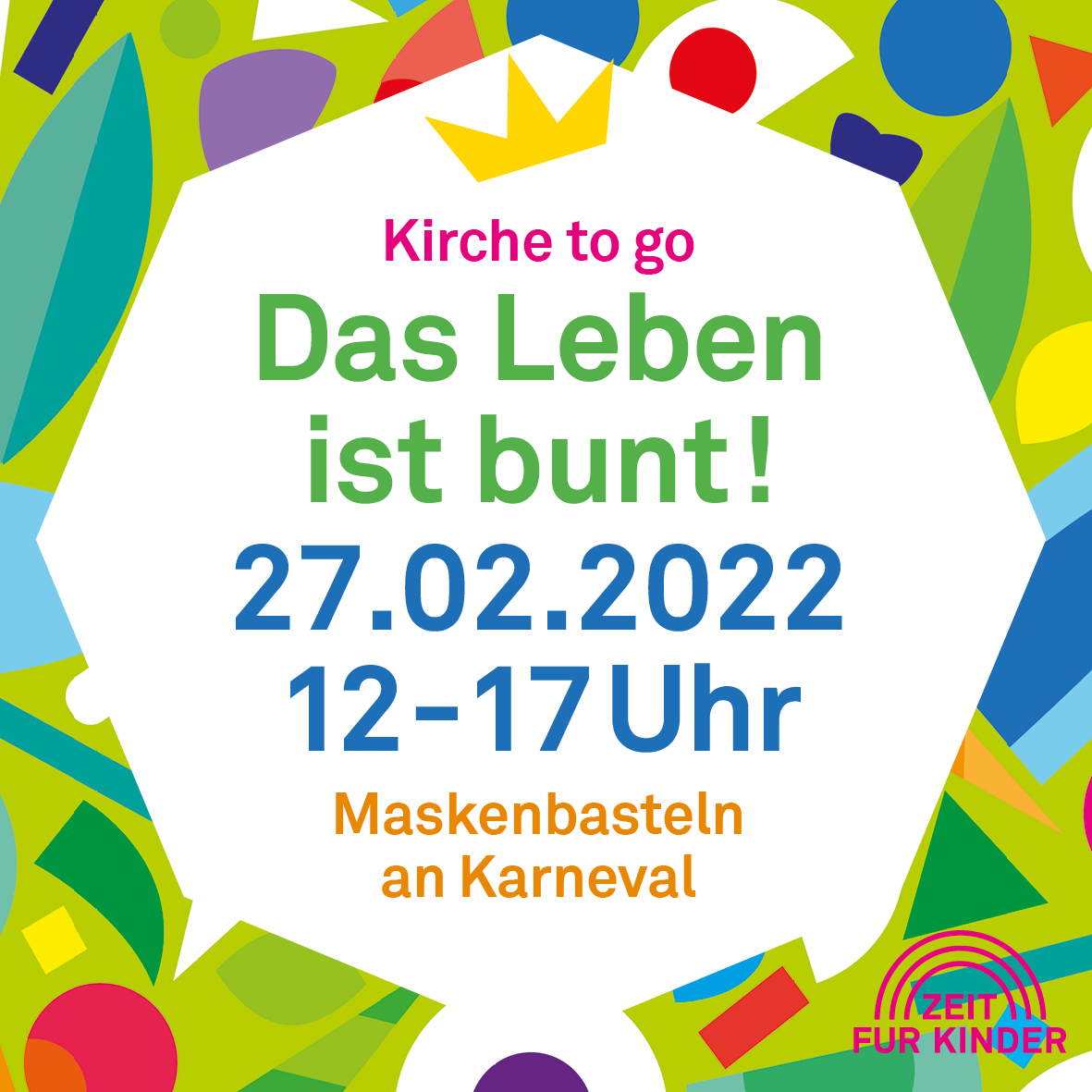 Kirchgarten, Lutherkirche Nippes Siebachstraße, Köln, Deutschland, DeutschlandMaskenbasteln an Karneval! Das Leben ist bunt – und wir machen es noch bunter: Die Wundertüten für eure wilden, quietschigen, süßen oder bissigen Masken zum daheim basteln können ab mittags im Kirchgarten abgeholt werden. Zeit für Kinder sagt Alaaf!