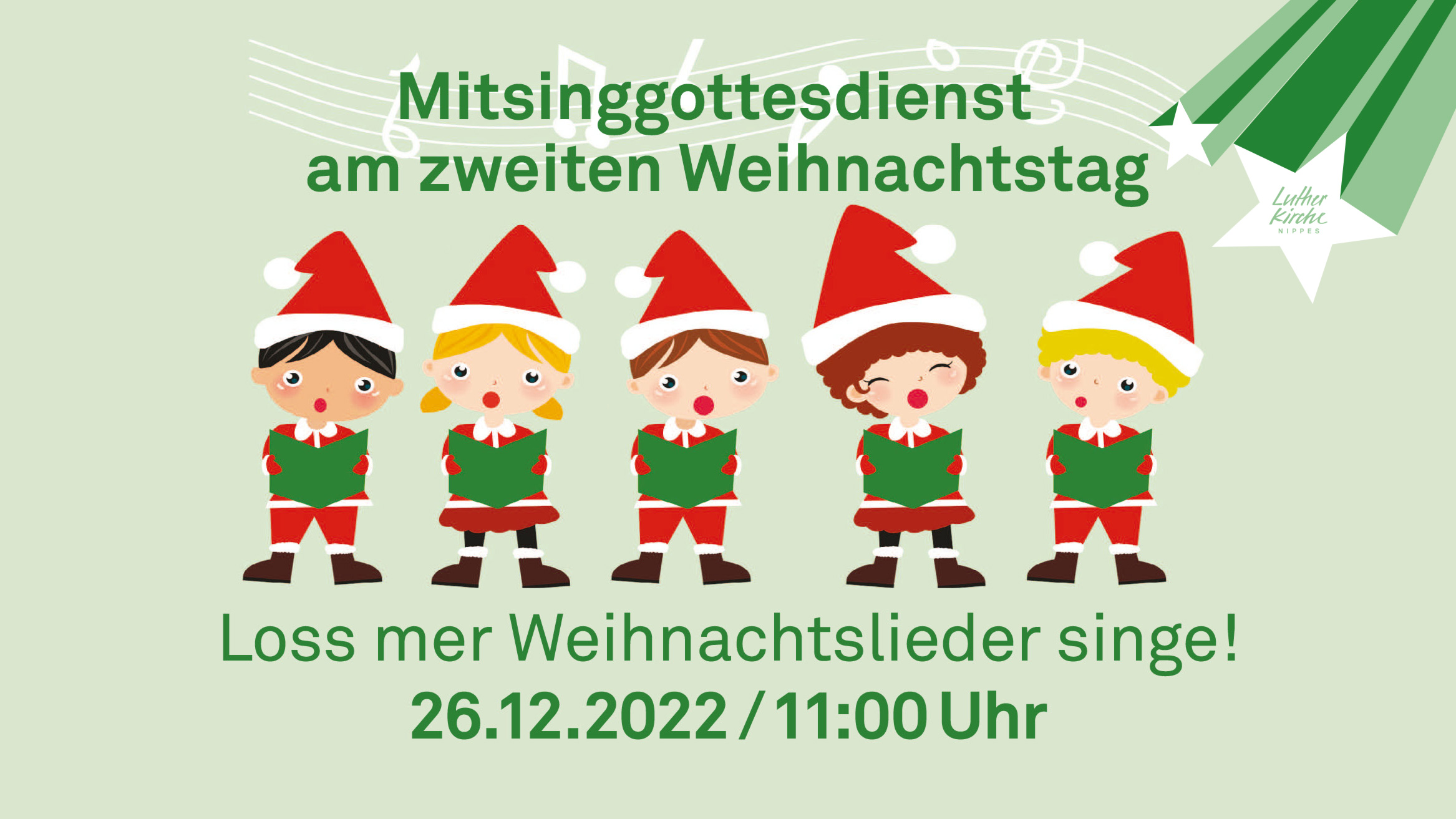 Lutherkirche Nippes Siebachstraße 85, Köln, NRW, DeutschlandLoss mer Weihnachtslieder singe! Ein Mitsinggottesdienst – mit Liedern von Stille Nacht bis Merry Xmas Exerybody, von Fairytale of New Yorck bis Tochter Zion. Alle können kommen. Also dann: Mitsingen Weiterlesen