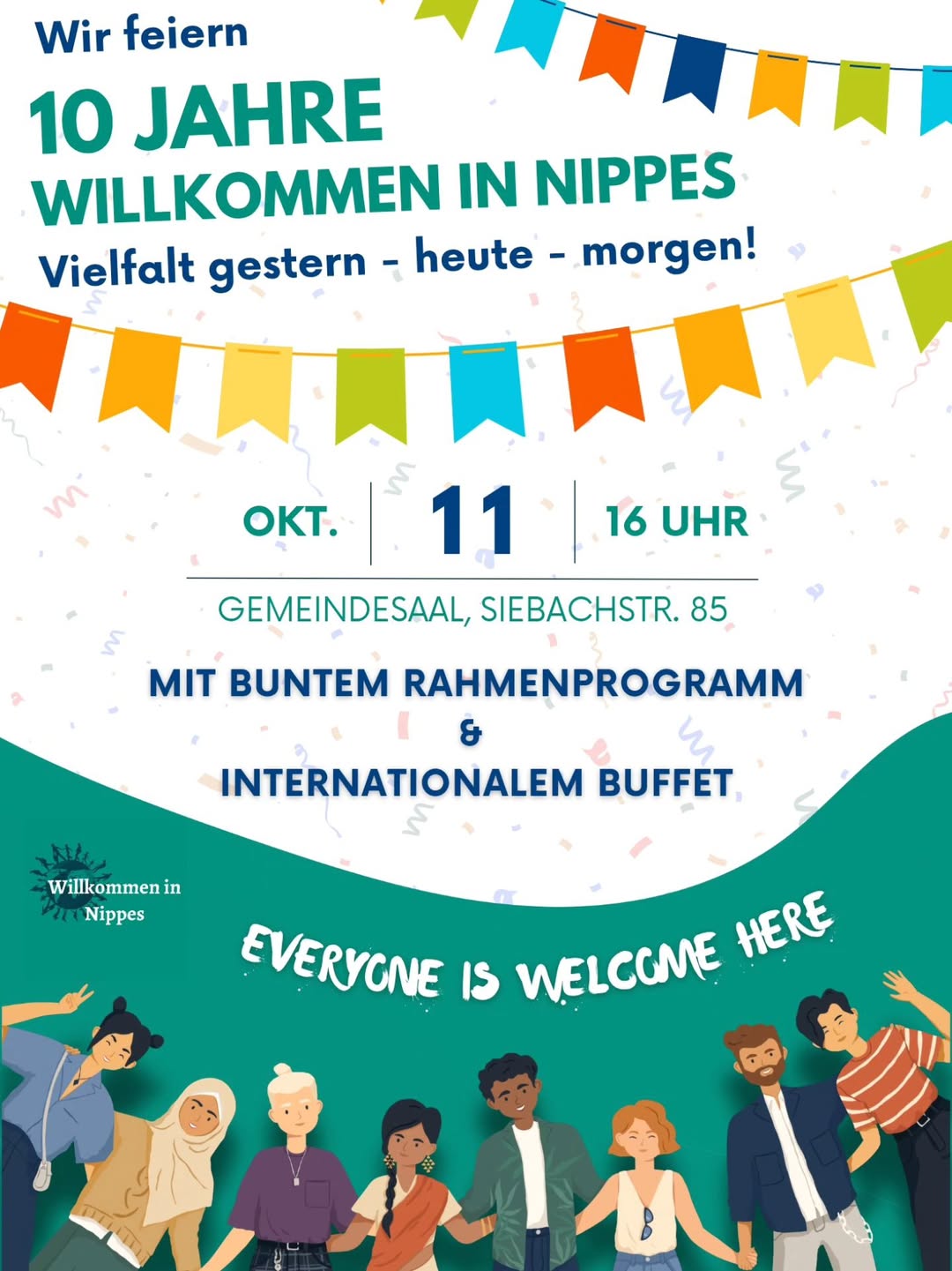 Gemeindehaus , DeutschlandWillkommen in Nippes lädt ein: 10 Jahre Willkommen in Nippes Vielfalt gestern · heute · morgen! Seit 2015 engagieren wir uns als ehrenamtliche Initiative für geflüchtete Menschen in Köln. In diesen 10 Jahren haben wir mit Herzblut Begegnungen geschaffen, Sprache gefördert, beraten, unterstützt und Brücken gebaut – immer mit dem Ziel, Integration auf Augenhöhe Weiterlesen