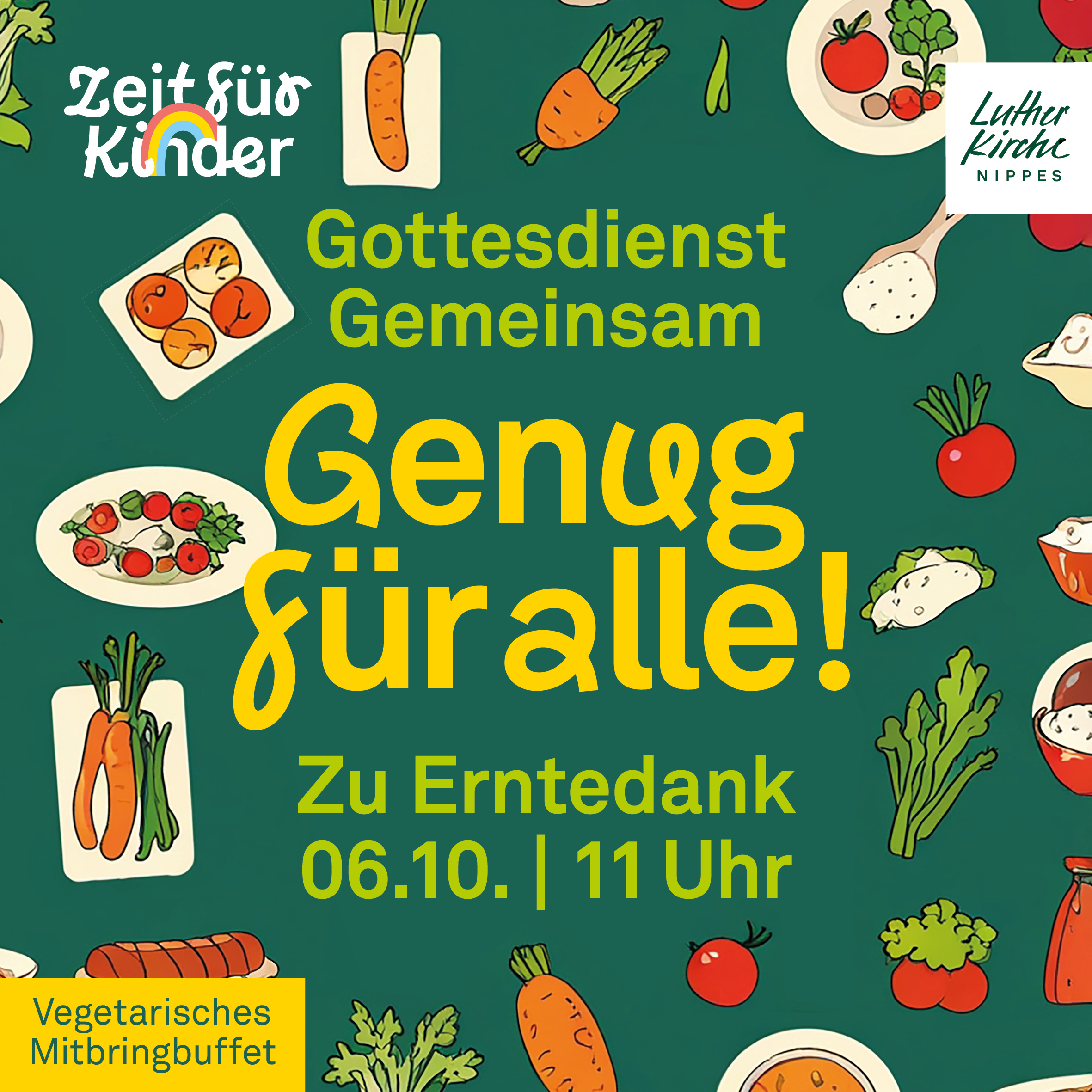 Lutherkirche Nippes Siebachstraße 85, Köln, NRW, DeutschlandGenug für alle! Wenn alle dazutun, was sie/they/er kann, wird es für alle reichen. Das haben auch Jesus und seine Freund*innen erlebt. Das gilt auch fürs vegetarische Buffet im Anschluss: Wenn du möchtest und kannst, bring gerne etwas dafür mit. Und egal, ob du etwas mitbringst, bist du eingeladen mitzuessen. Gestaltet von Pfarrerin Dorothea Ugi Weiterlesen