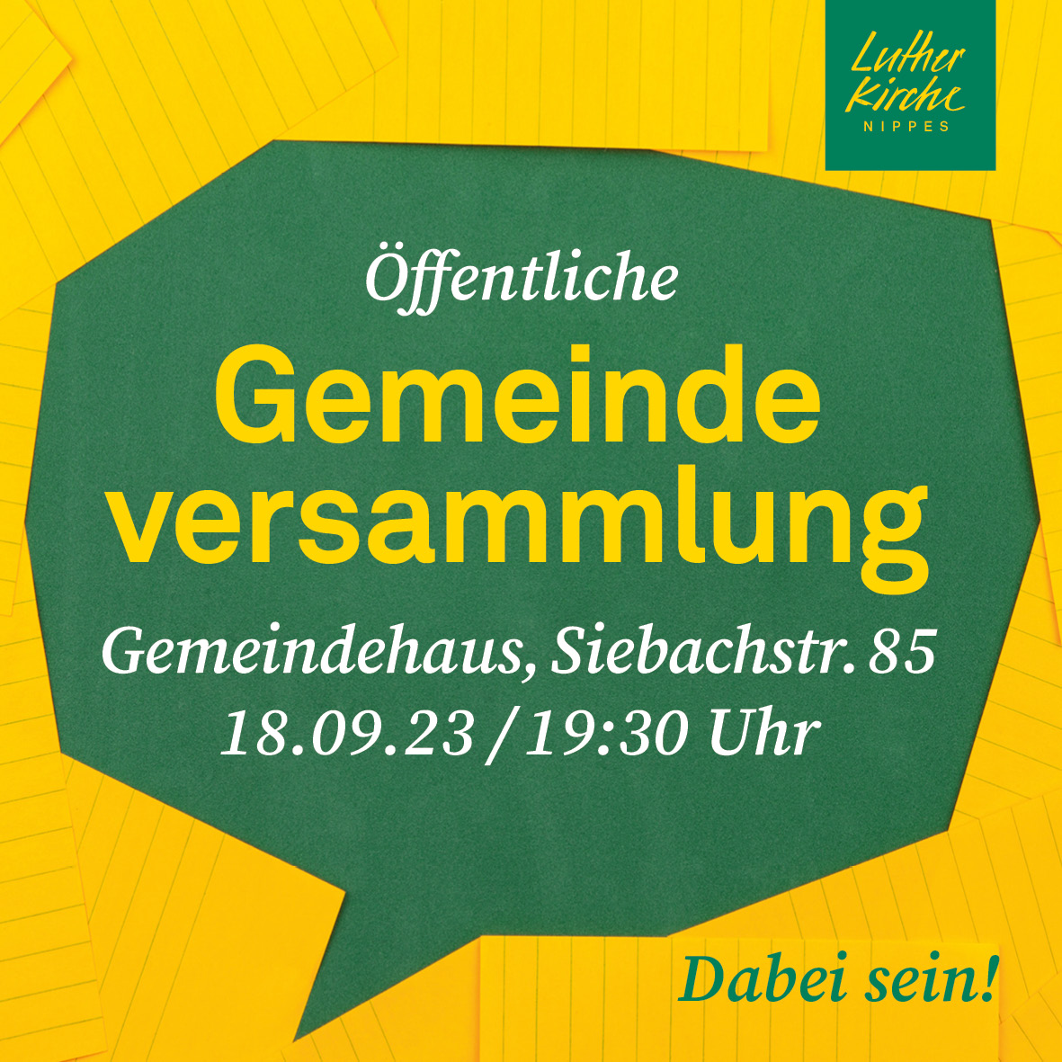 Dabei sein – herzliche Einladung Gemeindeversammlung 18. September / 19:30 Uhr Gemeindehaus, Siebachstr. 85 Mit Informationen über die Neuwahl des Presbyteriums 2024, die Angebote unserer Kirchengemeinde und die anstehende Sanierung unseres Kirchturms. Der leitende Architekt stellt anhand eines Modells unserer Kirche das Bauvorhaben anschaulich vor. Alle, die sich für das interessieren, was unsere Gemeinde zurzeit Weiterlesen |