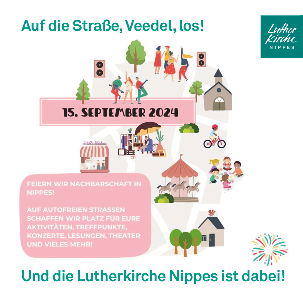 Wir sind dabei, bei "Auf die Straße, Veedel, los!" und feiern Nippes und unsere Nachbarschaft. 11 Uhr Gottesdienst zum Veedelsfest ab 12 Uhr Internationales Essen im Kirchgarten 14 Uhr Chorlonia 15:15 Uhr Veedelschor Nippes Mehr zum Veedelsfest Auch mit dabei: Die Bunte Straße unseres Jugendzentrums Werkstattstraße Ansprechpartnerin Miriam Haseleu haseleu@lutherkirche-nippes.de 02 21 / Weiterlesen