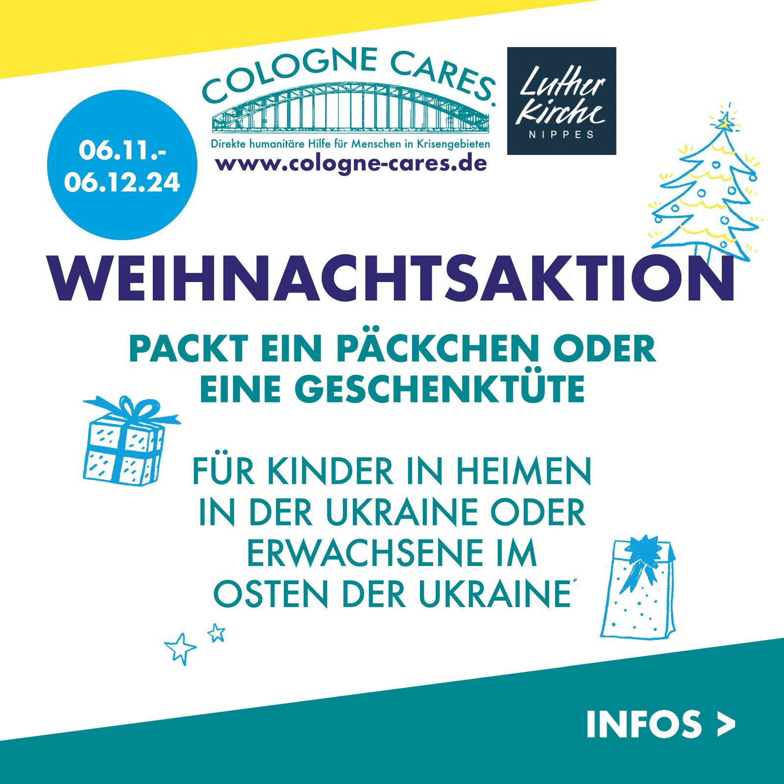 Wir freuen uns als Partner dabei zu sein: Cologne Cares Weihnachtsaktion Pack ein Päckchen oder eine Geschenktüte für Heimkinder in der Ukraine oder Erwachsene im Westen der Ukraine Artikel für Kinder: Stofftiere, Spielzeug, Malsachen, Bilderbücher, Süßes… Artikel für Erwachsene: Wärmepflaster, Thermounterwäsche, Drogerieartikel, Tee, Kaffee… Gib dein Päckchen bei uns ab: 06. November bis 06. Dezember Weiterlesen |