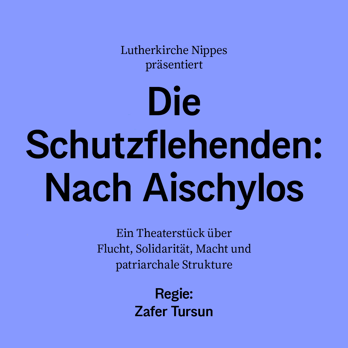 Die Lutherkirche Nippes präsentiert Die Schutzflehenden: Nach Aischylos Ein Theaterstück über Flucht, Solidarität & Macht 18.+ 19. Januar | Lutherkirche 25.+ 26. Januar | Gemeindehaus Jeweils 19:30 Uhr Mit Die Schutzflehenden: Nach Aischylos präsentieren wir ein eindrucksvolles Bühnenstück, das den fast 2500 Jahre alten Stoff des antiken Dramatikers Aischylos mit brennenden Themen unserer Zeit verbindet: Weiterlesen