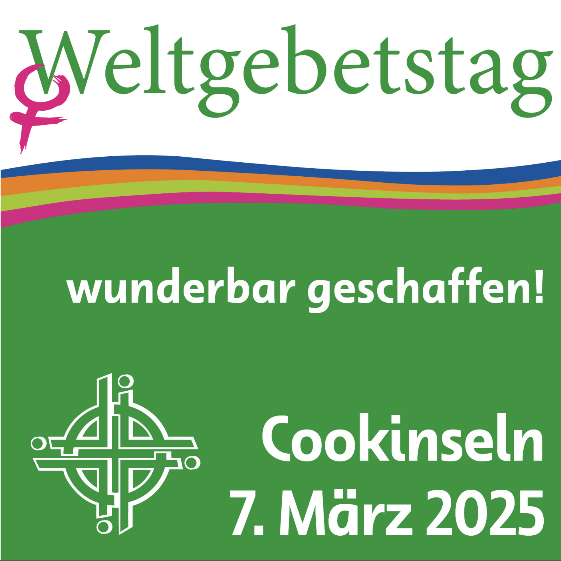 Weltgebetstag 2025: Wunderbar geschaffen! Dieses Jahr kommt das Programm von den Cookinseln. Der Gottesdienst am Weltgebetstag der Frauen findet 2025 in der Lutherkirche Nippes statt. In Zusammenarbeit mit den Katholischen Kirchengemeinden St. Engelbert und St. Bonifatius in Riehl, der Katholischen 'Kirche im Veedel' Nippes/Bilderstöckchen, sowie der Evangelischen Kirchengemeinde Niehl-Riehl. |