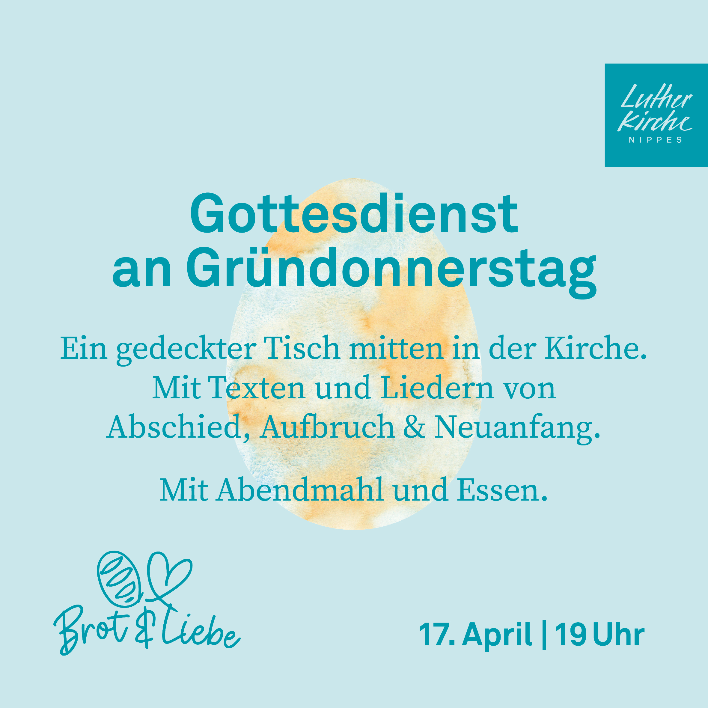 Brot & Liebe - ein gedeckter Tisch mitten in der Kirche, Texte und Lieder von Abschied, Aufbruch und Neuanfang. Mit Abendmahl und Abendessen. Mit den Pfarrerinnen Dorit Felsch und Miriam Haseleu. Online spenden Spenden für unsere Kollektenzwecke funktioniert auch per Überweisung. Die Kontodaten dazu finden Sie im Bereich Spenden. Vielen Dank für Ihre Unterstützung! Weiterlesen |