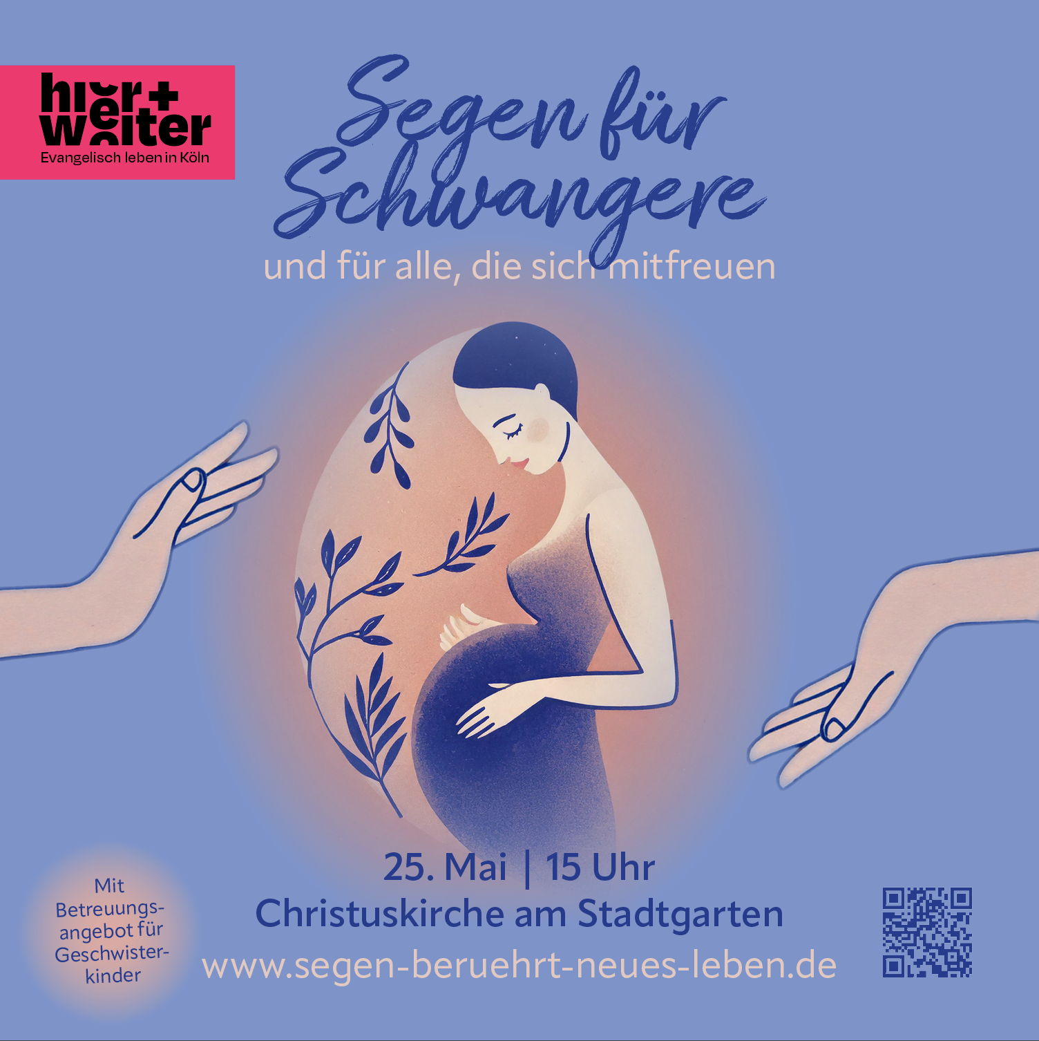 Ein Angebot des Netzwerks "hier+weiter – Evangelisch leben in Köln": Segen für Schwangere und für alle, die sich mitfreuen 25. Mai | 15 Uhr Christuskirche am Stadtgarten Die Zeit der Schwangerschaft ist eine Zeit vieler Veränderungen und unterschiedlicher intensiver Gefühle. Für alles, was da ist, soll Raum sein. Bringt gerne Partner*in, Freund*innen oder Familie mit. Auch Weiterlesen |