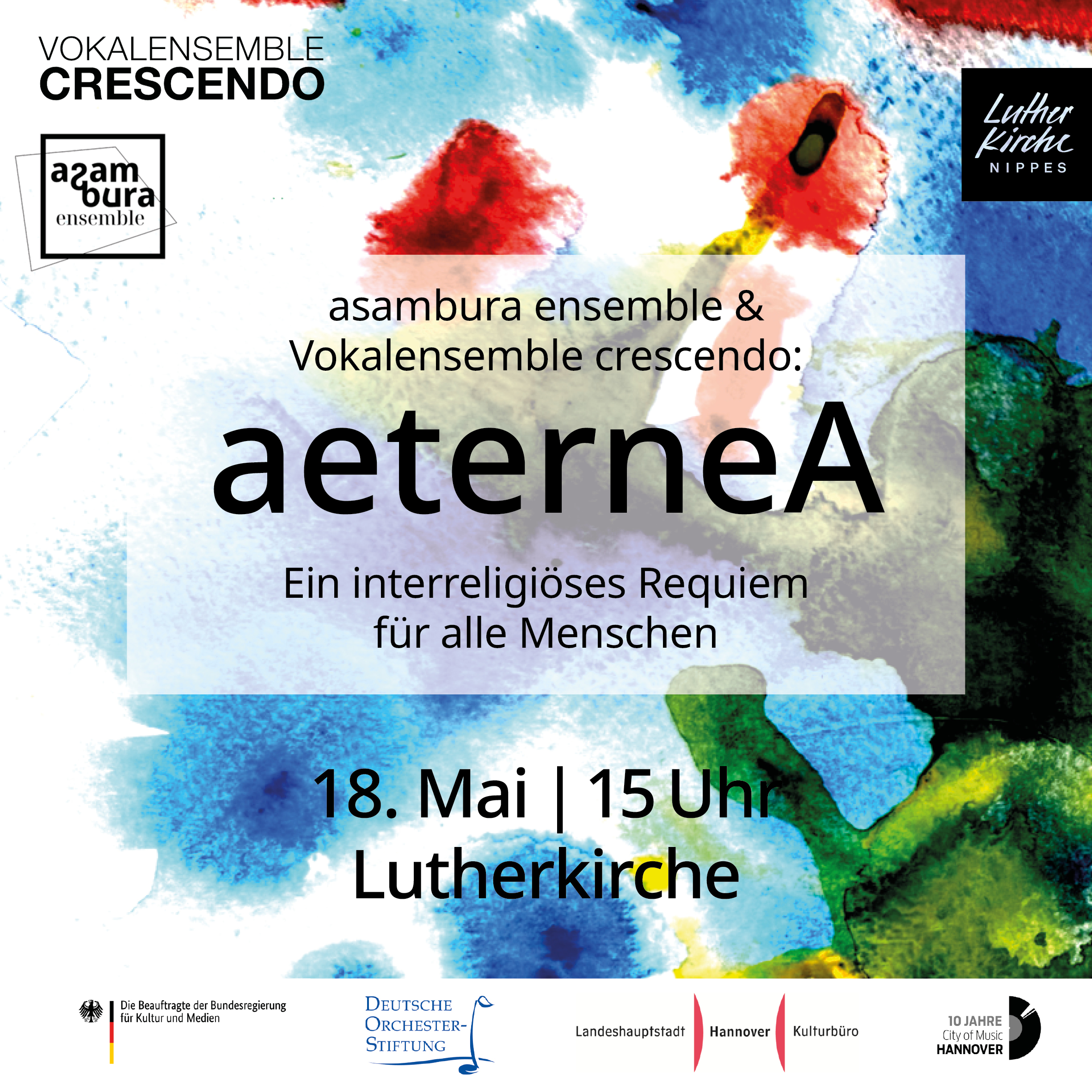 asambura ensemble & Vokalensemble crescendo präsentieren: aeterneA ein interreligiöses Requiem für alle Menschen Brahms‘ Requiem in klanglich-kompositorischer Neudeutung Sonntag, 18.05.2025 – 15:00 Uhr | Einlass 14:45 Lutherkirche Köln-Nippes (Kulturkirche) Der Eintritt ist frei – pay what you can. Zur Förderung der Kirchenmusik und der Konzertreihe Reservierung via Mail an kontakt@asambura-ensemble.de, Bezahlung an der Abendkasse Kompositorische Weiterlesen |